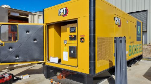 Two grid synchronised Caterpillar 715 kVA biodiesel generators fitted with Commapp controllers and configured as an embedded generator
